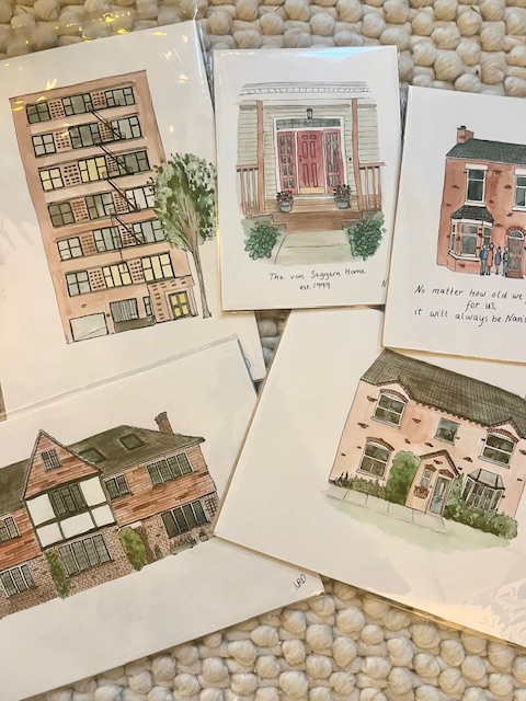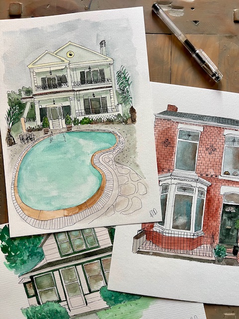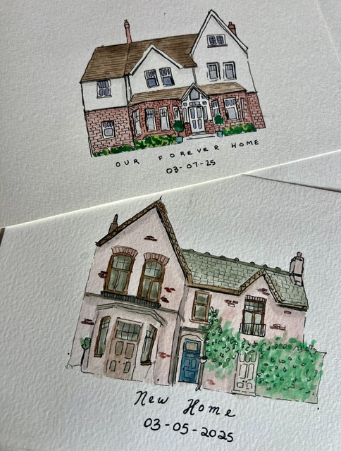 One of a kind paintings of your home or another building of your choosing (e.g. wedding venue, shop front). Created using ink and watercolour.